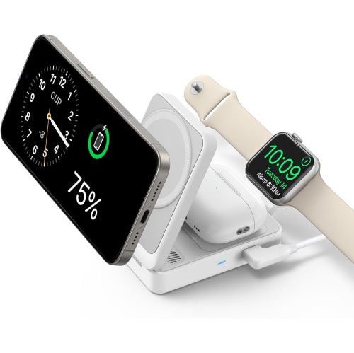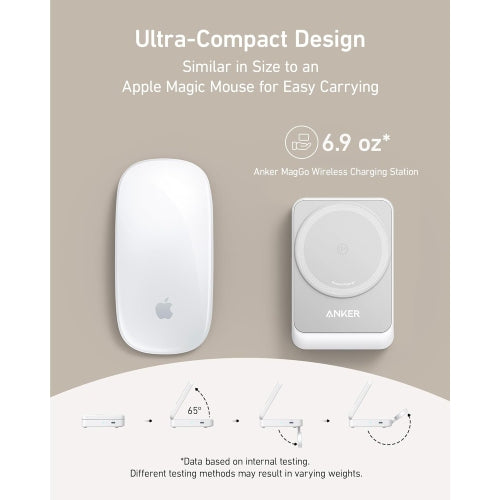 Ultra-Compact Foldable Design: At only 6.9 oz, this wireless charging station boasts a size comparable to a deck of cards when folded and weighs less than a baseball.