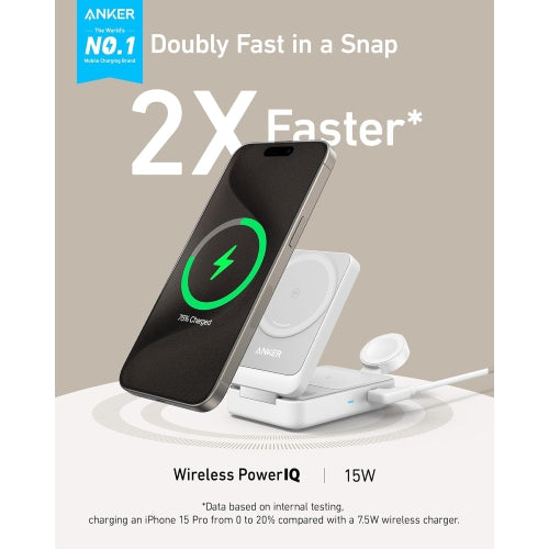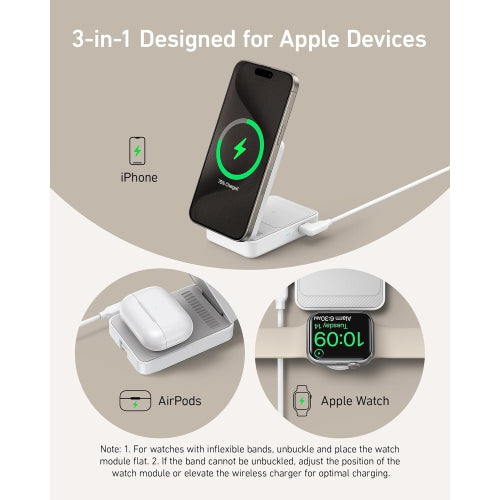 Anker MagGo 3-in-1 iPhone 16 Charging Station, MagSafe-Compatible Wireless Charger Stand, Qi2 Certified 15W Foldable Charger for iPhone 15/14, AirPods, Apple Watch 9 (40W USB-C Charger Included)