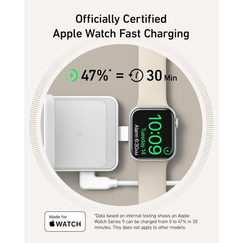 Time-Saver for Time Keepers: Quickly power up your Apple Watch Series 9 to 47% in just 30 minutes thanks to the MFW certification—significantly faster than non-certified chargers.