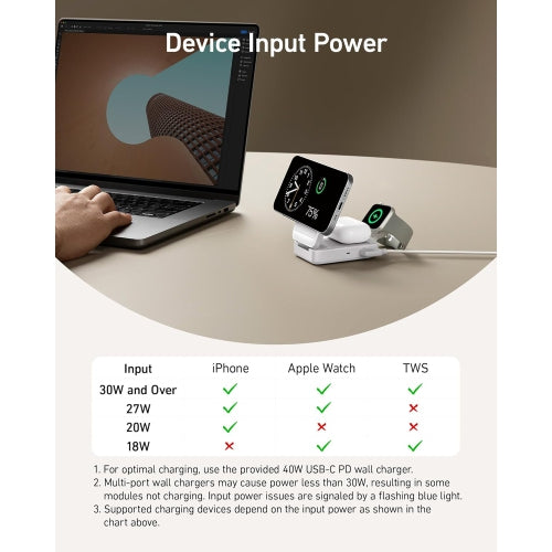 3-in-1 Apple Charger: Charge your iPhone, AirPods, and Apple Watch simultaneously, all while enjoying the versatility of the built-in adjustable stand. (Note: For optimal charging, use the provided 40W USB-C PD wall charger.)