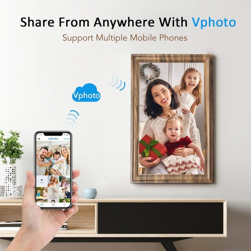 【32GB Large Storage & Instantly Wireless Sharing】Wireless sharing precious photos or videos via Vphoto app, which you can download free on your Android and iOS mobile phone. Built-in 32GB large storage, and extend micro SD card (max.128GB, not included) empowers a huge capability of storage.More convenient and record your happy times with smart digital photo frame.