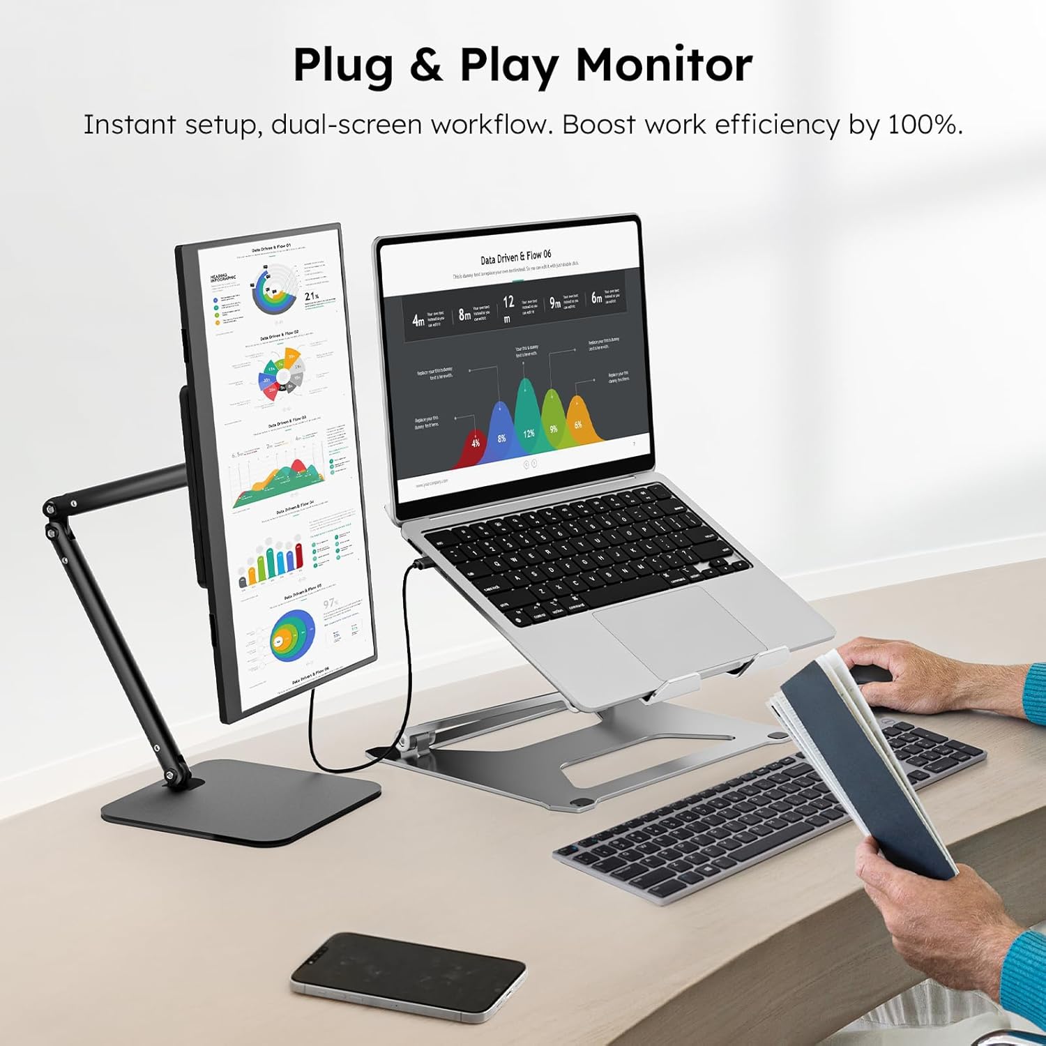 Portable second screen with matte display, 60Hz refresh rate, foldable stand, and carry case