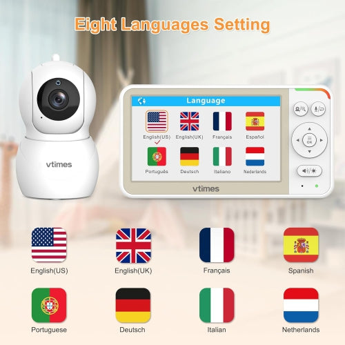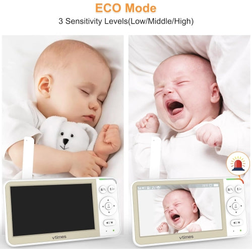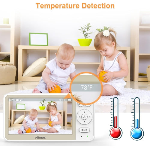 VTimes 5'' Screen Video Baby Monitor with Camera and Audio, 4000mAh Baby Monitor No WiFi Remote Pan-Tilt-Zoom VOX, Two-Way Talk, Infrared Night Vision, Temperature Display, 1000ft