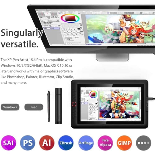 · Wide Compatibility- Windows 10/8/7(32/64 bit), MAC OS 10.10 and higher, and work with Photoshop, Painter, Illustrator, Clip Studio, etc. Sketch, paint, and design directly on the XP-Pen Artist 15.6 Pro’s digital medium monitor surface!